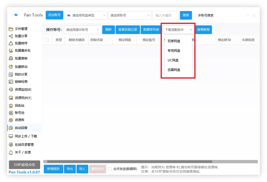 PanTools 自动回复&监视转存功能演示教程,支持7种规则