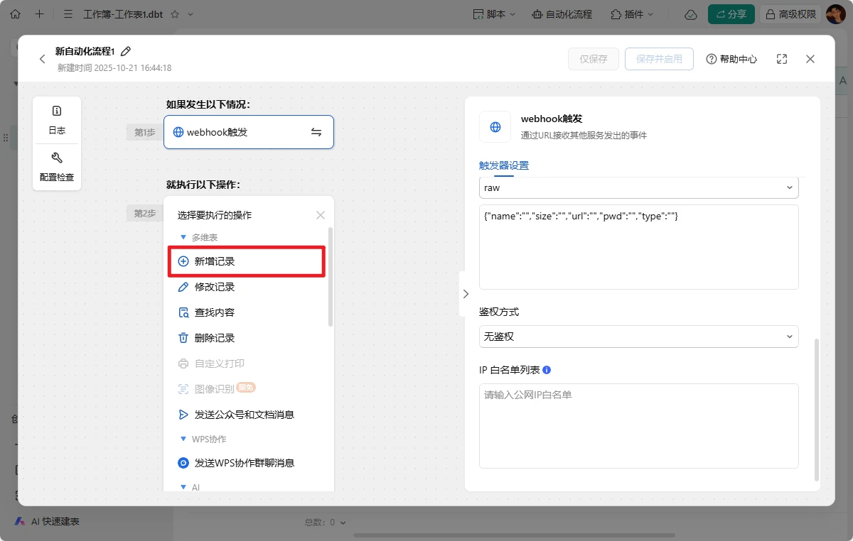 第六步、点击 创建空白流程 后,选择 webhook触发