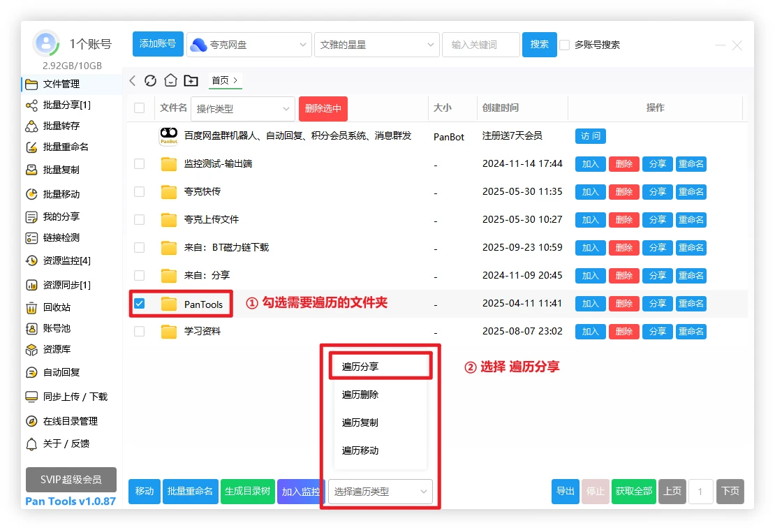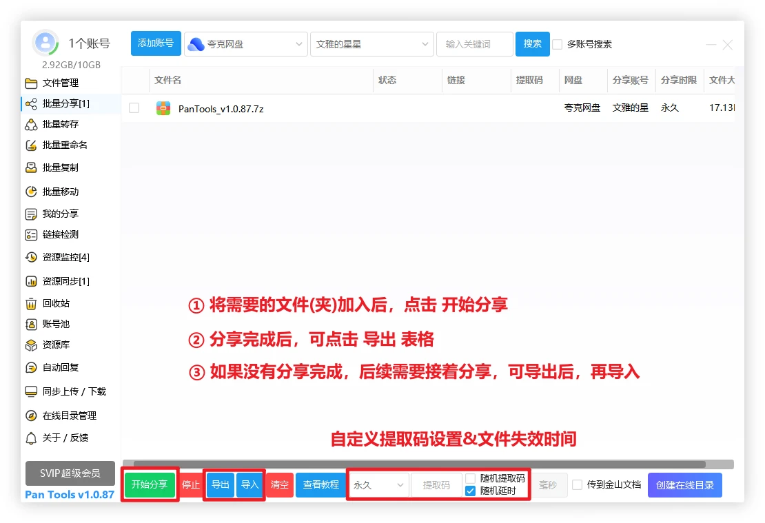 PanTools 如何同时批量分享自己的多个网盘资源?
