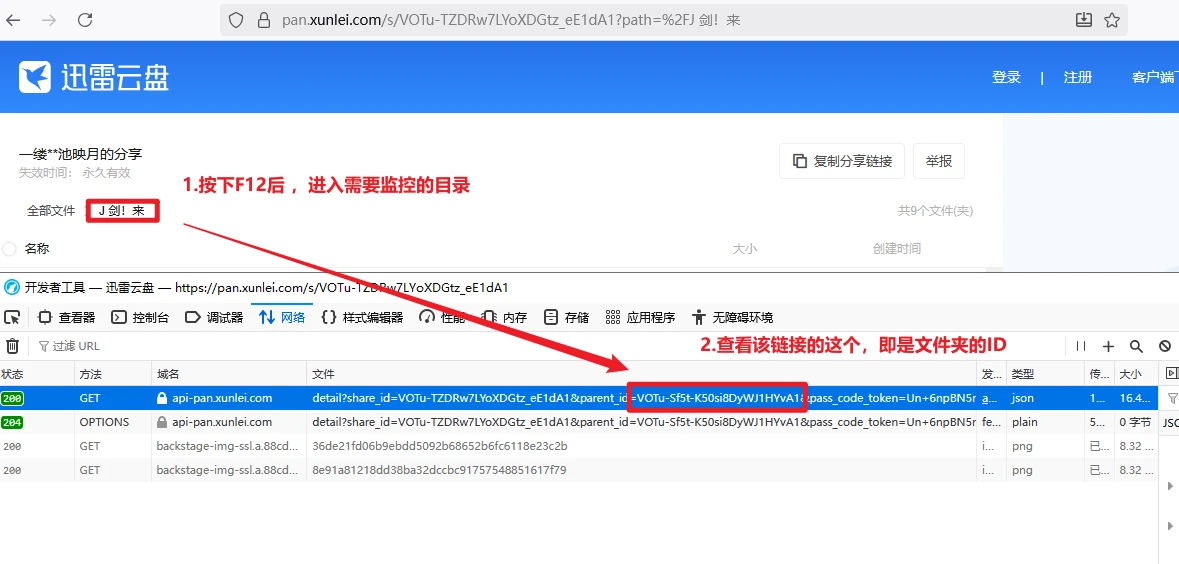 在浏览器按下F12 ,按照下面截图进行获取文件夹ID